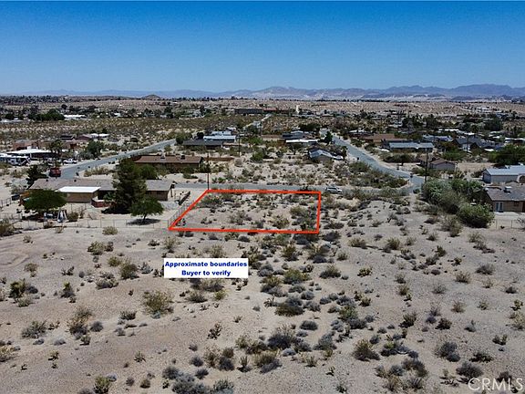 Amazing opportunity to own a spacious 15,400 sq ft lot at the end of a development, nestled near the foothills of a stunning mountain range. Imagine starting each day with your morning beverage on your patio, framed by breathtaking mountain vistas, with the renowned Joshua Tree National Park just beyond. For those desiring even more space, the adjacent lot is also available, offering the potential to combine both for over half an acre to create your desert oasis. Utilities are conveniently located at the street, and prospective buyers should verify all details and connection costs with the city and utility companies.