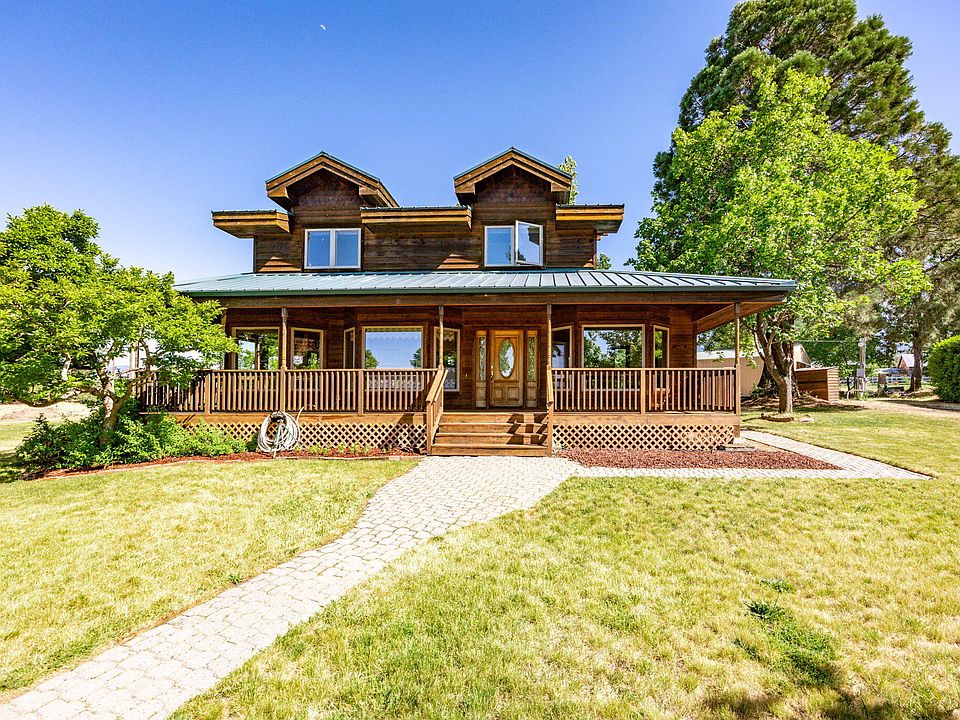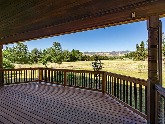 Don't miss this charming custom Lindal Cedar Home on 4 flat acres with TID, located a quarter mile from downtown Talent, with spectacular 180 degree views. Main level living composed of the primary suite with bay window, 2 closets, dual vanity, tiled tub/shower and door to back deck for a spa. Kitchen opens to family room with wood burning fireplace and soaring ceilings extending beyond the second story loft & covered wrap around deck. The dining area, living room & eating area all have large bay windows giving abundant natural light. The guest bedroom or office, large laundry room, half bathroom add utility. The second story has gorgeous cedar ceilings, large open loft, 2 bedrooms & full bath. Outside you will find a 3 bay carport, shop, barn, greenhouse and wood shed. The fenced property could be used to grow crops or raise animals. The yard is landscaped with underground sprinklers, drip system, fruit trees and sequoias. See attached features sheet, floor plan for more detail.