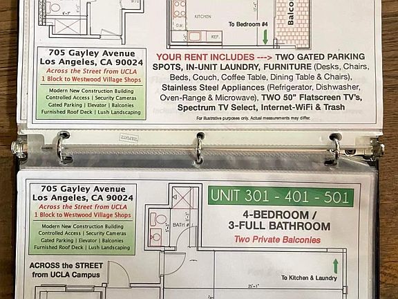 This is a 4 bedroom, 3.0 bathroom, apartment home. This home is located at 705 Gayley Ave, Los Angeles, CA 90024.