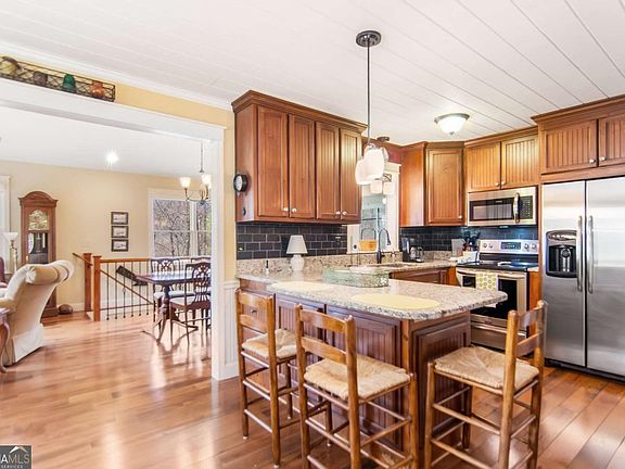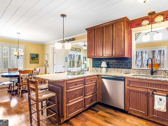 Welcome to the Mountains! - Nestled in the heart of Walnut Mountain-one of Ellijay's most desirable gated communities-this charming mountain home perfectly blends rustic comfort with modern updates. Renovated and thoughtfully expanded in 2013, it comes fully furnished, including a washer and dryer, making it move-in ready from day one. With 2 bedrooms, 2 fully renovated baths, and a flexible lower-level space, this home offers comfort, character, and room to grow. The main level features a cozy living room with a gas log fireplace, a spacious family room bathed in natural light, and a quaint kitchen with granite countertops and an adjoining dining area. The oversized primary suite includes a private ensuite bath, offering a peaceful retreat at the end of the day. Upstairs, you'll find a second bedroom, a beautifully updated full bath, and a versatile loft space-ideal for a home office, reading nook, or creative corner. The lower level includes a one-car garage/workshop, a convenient half bath, and a bonus room that opens to a private side sitting porch, perfect for enjoying your morning coffee or relaxing in the evenings. Outdoor living is just as inviting, with a classic rocking chair front porch, a screened-in porch for year-round enjoyment, a carport, and a gently sloped paved driveway for easy access. Located within the private, gated Walnut Mountain community, this home includes access to fantastic amenities: paved roads, high-speed internet, a whole-house generator, swimming pool, scenic hiking trails, peaceful lakes, and even a campground. All of this is just minutes from Historic Downtown Ellijay, local apple orchards, mountain biking trails, and award-winning wineries. Whether you're looking for a full-time residence, weekend getaway, or investment opportunity-this home is your gateway to the mountain lifestyle you've been dreaming of.