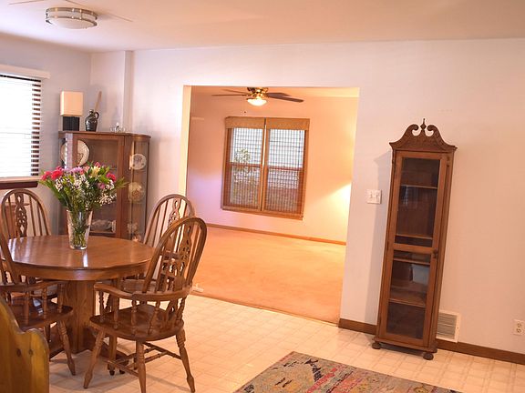 Looking for a home with a little land and a huge garage, but yet close to town, then look no more! You can have a private retreat in the backyard or walk to Fairgrounds Park and dining... your choice. With almost 1400 sq ft on the inside, the possibilities are endless. The kitchen has ample cabinets and counter tops, plus it includes all of the appliances. The dining room opens to the large living room with plenty of space to spread out. The front bedroom and living room are believed to have hardwood flooring underneath the carpet that could be ready to be brought back to new life. Storage will not be an issue in this house between all of the extra closets. The main bedroom even has its own large bathroom and not one, but two closets, one of which is even a walk in! If that wasn't enough for that room, there is access to the 3 seasons room for a place to get ready for your day or unwind from your stresses. Outside you will find a large concrete patio tucked in to enjoy the good weather. Now let's talk about the garage. With over 1300 sq ft in the garage, you will never run out of room for all of your outdoor hobbies! Property is sold as is.