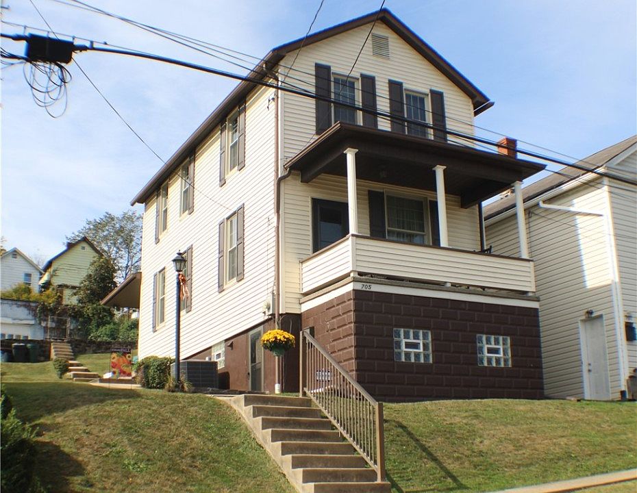 Looking for a spotless, truly move-in condition home? Updated kitchen with chic Grey cabinetry, stainless steel fridge and glass top stove w double oven. Beautiful two-tone dining room with chair-rail, big bright windows! Cozy Living room has access to private covered front porch. Upstairs there are two roomy bedrooms. The front, larger room is a lovely shade of lavender and has a double closet with great mirrored sliding doors. The second bedroom is roomy and bright. Original woodwork throughout! Full bath is clean and updated. Basement has glass block windows, newer hi-eff gas furnace with A/C, laundry and plenty of storage. Nice back and side yard, side kitchen porch.