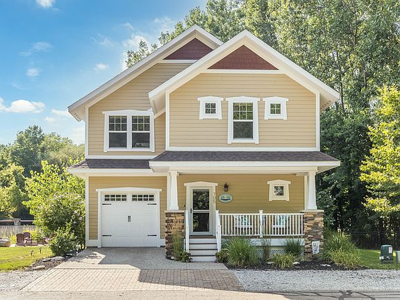 Discover this one-of-a-kind custom home in the coveted Harbor Club community. Ideally located next to association green space, it offers rare privacy with a peaceful, park-like feel, just a short walk to Lake Michigan beach access and the marina. This 5 bedroom, 4.5 bathroom home offers 3,148 square feet of beautifully designed living space. Highlights include an open floor plan, hardwood floors, a gourmet kitchen with granite countertops, stainless steel appliances, and a large center island perfect for entertaining. The spacious primary suite features vaulted ceilings, gas fireplace, and large closet. Additional bedrooms provide plenty of room for guests, workspace, or family. Enjoy summer evenings on the screened porch or relaxing on the front porch. Community amenities include two swimming pools, one open year round with a hot tub. STR Business permit in place making it an excellent investment!