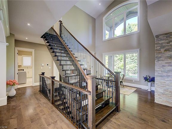 Built by Valleyrauss with meticulous craftsmanship and all-brick construction, this 4+ bedroom Laurelwood residence offers over 4,000 sq. ft. of refined living designed for the modern family. A grand cherry staircase makes a striking first impression, while soaring 11-foot ceilings and coffered details in the living and dining rooms establish an atmosphere of elegance. The main floor is both functional and spectacular, anchored by a floor-to-ceiling stone gas fireplace and filled with natural light. The chef’s kitchen is a showpiece, boasting a large side-by-side fridge, double wall oven, extended cabinetry, heated floors, a generous island with beverage fridge, and premium appliances—perfect for both family dinners and large gatherings. Upstairs, 10-foot ceilings enhance the spaciousness of four bedrooms, including a primary retreat with a coffered ceiling detail with ambient lighting, a spa-like ensuite with heated floors, freestanding tub, glass shower, and double vanity, plus access to a private covered balcony. The lower level continues the luxury with hydronic heated floors and versatile finished space for media, play, or fitness. Outdoors, the backyard is designed for family life and entertaining, featuring an interlock patio, a covered terrace, and natural gas hookups for effortless grilling. Surrounded by parks, trails, and top-rated schools, this home places you within minutes of Costco, The Boardwalk’s shops and restaurants, YMCA family programs, and the hiking paths of Laurel Creek Conservation Area. Every detail—from 9-foot solid doors to refined trims and lighting—has been carefully chosen to blend comfort with sophistication. A rare opportunity to own a family estate where lifestyle, location, and luxury meet.