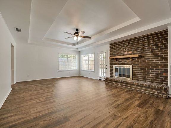Ready for move-in. 3 Bed 2 Bath 1677 sqft house. Huge living room area with fireplace great for entertainment. Laminate hardwood floor design throughout the entire house. Kitchen includes refrigerator, electric stove top and stove oven, dishwasher, disposal, lots of cabinet space, & stone counter tops. Spacious secondary bedrooms. 2 car garage includes large workbench. Utility room setup for electric washer & dryer connections. If refrigerator ever requires a repair, owner will repair it only if the repairs aren't greater than a replacement refrigerator. If repairs are greater, then refrigerator will be removed, & tenant will need to get a new refrigerator. Backyard is landscaped and perfect for entertaining friends and family. The backyard includes a 11 x 9 storage shed. The house is conveniently located to major highways when you get out. Close to schools, restaurants, entertainment, and shopping.