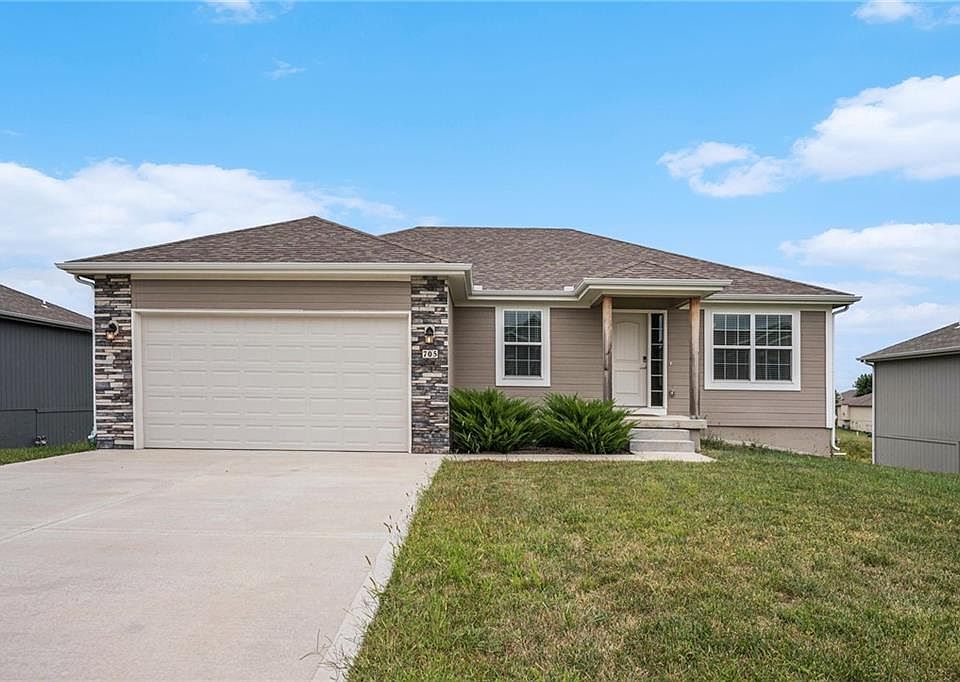 Welcome to this spacious 5-bedroom ranch that combines modern updates with plenty of room for everyone. The open main level features a bright living room with a cozy fireplace and large windows, flowing easily into the kitchen with granite counters, stainless steel appliances, and a functional island. The primary suite offers a tray ceiling, walk-in closet, and private bath with double vanities. Four additional bedrooms provide flexibility for family, guests, or a home office. The finished basement expands your living space, while the unfinished section is perfect for storage or hobbies. Step outside to enjoy evenings on the back deck overlooking the pond and green space. With a two-car garage and convenient location near schools, shopping, and dining, this home is a fantastic find for those wanting both space and comfort.