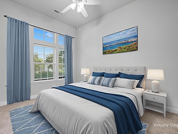 The private primary suite includes a charming bay window, dual vanities, a soaking tub, separate shower, and a generous walk-in closet. Two additional bedrooms share a full guest bath, and a flexible den space offers options for a home office, playroom, or media room.