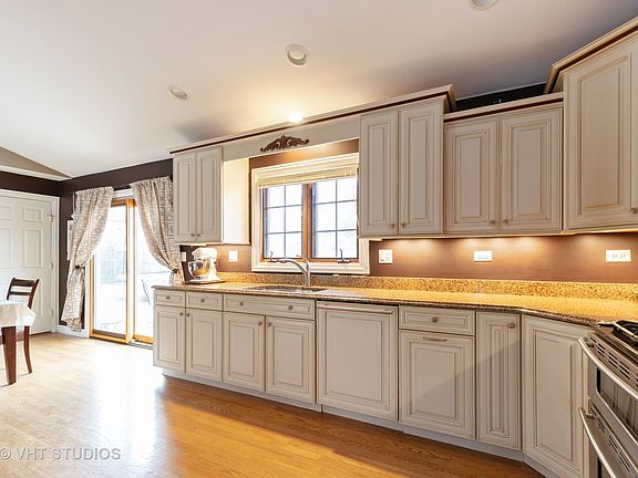 Fabulous home so light & bright with vaulted ceilings and hardwood floors throughout the first & second floor. A dream kitchen with custom 42" cabinets, Quartz counter tops & stainless steel appliances. Frig is brand new along with washer & dryer. Large dining area with sliders to brick paver patio & fenced yard great for entertaining! Very private backyard. Awesome mud room on the first floor. Lower level has awesome family room with wood burning fireplace, full bathroom & laundry room Great location close to schools, downtown & park. A wonderful place to call home!