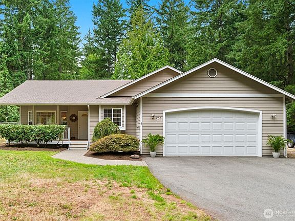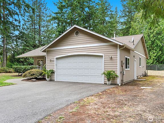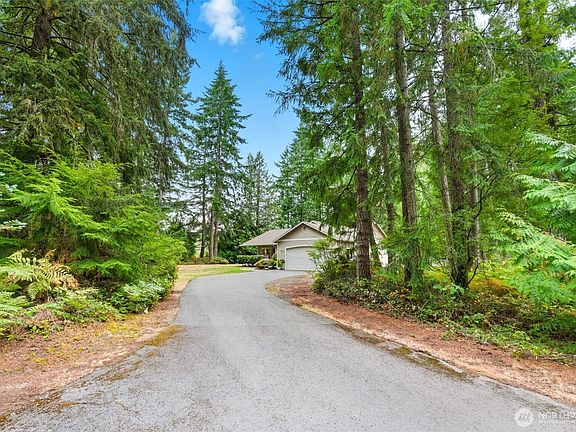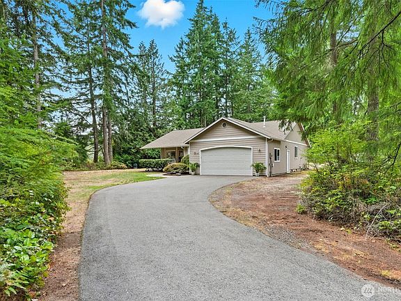 At the quiet end of a cul-de-sac, this home offers more than an address—it offers breathing room. Set on 1.29 acres next to a Christmas tree farm, the setting feels serene yet connected. A large fenced yard and dog run welcome four-legged companions, while the open land invites gardens, firepits, play space, or quiet mornings with coffee. Inside, an open floor plan flows with ease, anchored by a chef-sized kitchen looking out to the backyard—perfect for gatherings that spill outside. Three bedrooms and two baths keep life practical, with a generator hookup adding peace of mind. Just a quick drive to Gig Harbor, just over an hour to Seattle, or minutes to the ferry into West Seattle or downtown, this home delivers lifestyle and location.