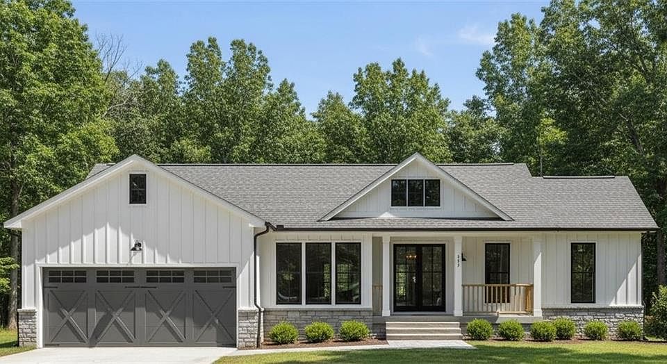 Brand new construction ranch-style on 3.02 acres in Locust Grove offering the perfect mix of modern comfort and country charm! This thoughtfully designed 3-bedroom, 2-bath home includes an additional flex room that can be used as an office or guest space, plus a spacious oversized 2-car garage with a dedicated storage room. Step inside through the elegant double-door entry and enjoy the ease of single-level living with soaring 10 ft ceilings, light brown wood flooring in the main living areas, and an open concept layout ideal for entertaining. The chef’s kitchen features bold blue cabinetry with quartz countertops, a large island with a farmhouse-style chandelier, a walk-in pantry, and direct flow into the family room highlighted by a cozy fireplace with custom wooden shiplap. The primary suite is a private retreat complete with tray ceilings, a feature wall with molding for added character, and barn wood doors leading to a spa-like bath with his-and-hers vanities, soaking tub, and separate standing shower. Secondary bedrooms are carpeted for comfort and share a beautifully finished full bath. A spacious walk-in laundry room adds convenience, while outdoor living is elevated with a huge covered back patio perfect for gatherings and enjoying peaceful evenings. This home is equipped with a brand new 1-horsepower well pumping 10 gallons per minute (no city water) and a brand new 1,500-gallon septic tank system, ensuring long-term efficiency and reliability. With excellent utilities, privacy, and plenty of land to spread out, this ranch home is a rare find in today’s market—offering brand new construction on acreage with designer finishes and timeless appeal. Estimated Completion for November 2025.