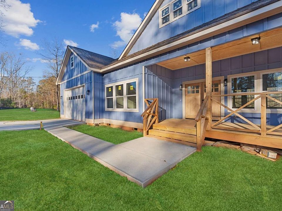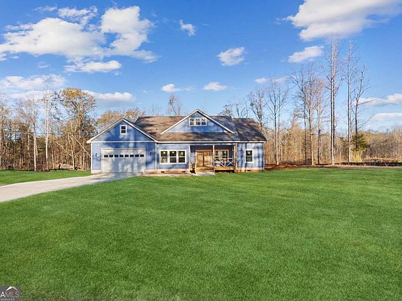 $10,000 SELLER PAID CLOSING. NEW CONSTRUCTION ranch-style on 3.02 acres in Locust Grove offering the perfect mix of modern comfort and country charm! This thoughtfully designed 3-bedroom, 2-bath home includes an additional flex room that can be used as an office or guest space, plus a spacious oversized 2-car garage with a dedicated storage room. Step inside through the elegant double-door entry and enjoy the ease of single-level living with soaring 10 ft ceilings, light brown wood flooring in the main living areas, and an open concept layout ideal for entertaining. The chef's kitchen features bold blue cabinetry with quartz countertops, a large island with a farmhouse-style chandelier, a walk-in pantry, and direct flow into the family room, highlighted by a cozy fireplace with custom wooden shiplap. The primary suite is a private retreat complete with tray ceilings, a feature wall with molding for added character, and barn wood doors leading to a spa-like bath with his-and-hers vanities, soaking tub, and separate standing shower. Secondary bedrooms are carpeted for comfort and share a beautifully finished full bath. A spacious walk-in laundry room adds convenience, while outdoor living is elevated with a huge covered back patio perfect for gatherings and enjoying peaceful evenings. This home is equipped with a brand new 1-horsepower well pumping 10 gallons per minute (no city water) and a brand new 1,500-gallon septic tank system, ensuring long-term efficiency and reliability. With excellent utilities, privacy, and plenty of land to spread out, this ranch home is a rare find in today's market-offering brand new construction on acreage with designer finishes and timeless appeal.