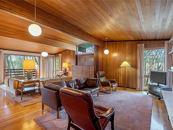 OPEN HOUSE CANCELLED!! SELLER HAS REQUESTED OFFERS DUE BY SUNDAY, APRIL 14TH AT 5 PM. This elegant mid-century residence was designed in 1962 by local architect George Bornstein, and has been lovingly cared for by its original owner! Expect to be impressed! The first floor consists of an eat-in kitchen with a built-in desk, double wall oven (2 yrs old), electric cooktop, and subzero fridge. Stunning solid oak wood floors and ceilings can be found in the dining area with built in china cabinet, family room and living room, along with double sliding doors leading to the newly replaced deck. The primary bedroom with private bath, 2 generous sized bedrooms and full bath complete the first floor. The lower level has 2 additional bedrooms, full bath, and a large rec room with French doors leading out to a private back yard. Plenty of storage in the numerous closets and built-in's! Roof & skylights new in 2020! Centrally located (partially in the City of Syracuse) this property is close to Wegmans, Erie Blvd., downtown, shopping, hospitals, and SU! Jamesville-Dewitt Schools! Don't miss out on this fabulous opportunity!!