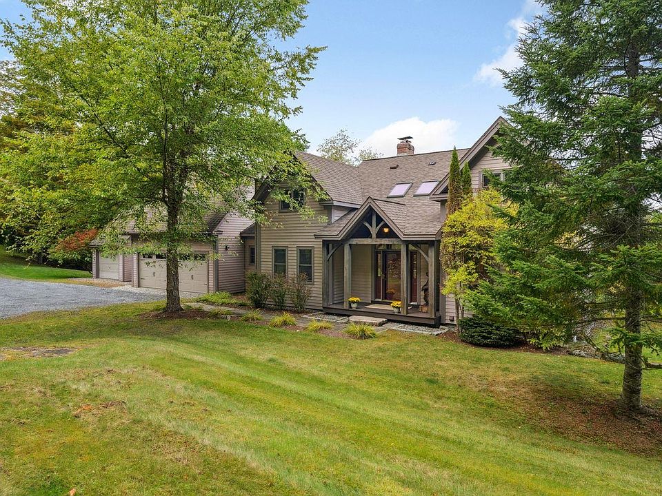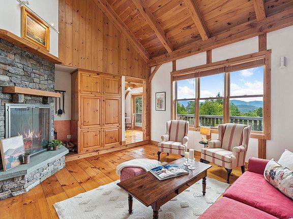 Located in one of our favorite enclaves, with end-of-road privacy yet mere minutes from Stowe village, you’ll find this perfect vacation or year-round home. 705 Taber Ridge is a four-bedroom, four-bath timber frame design with gorgeous views. A stone, wood-burning fireplace anchors the main living space, and beautiful, wide, pine plank flooring adds warmth. The cathedral ceiling and exposed post-and-beam accents create an open and cozy ambience. Abundant windows frame the yard and mountains in the distance. An expansive wrap-around deck makes it easy to enjoy the views throughout the seasons, while lounging or dining during the warmer months. Also on the first floor is the private, primary ensuite. Upstairs is an airy loft which might serve as an office or quiet reading room. Additionally, there are three bedrooms with vaulted ceilings and a full bath. A fully finished, lower-level walkout expands the living space with a sunken family room featuring a brick hearth, wood stove, full bath, laundry, and ample storage. An attached two-car garage plus a detached third bay provide abundant housing for your vehicles, implements, ski gear, bikes, etc. 705 Taber Ridge checks all the boxes: privacy, convenience, views, turn-key, Vermont!