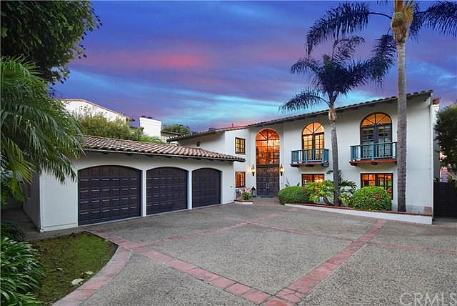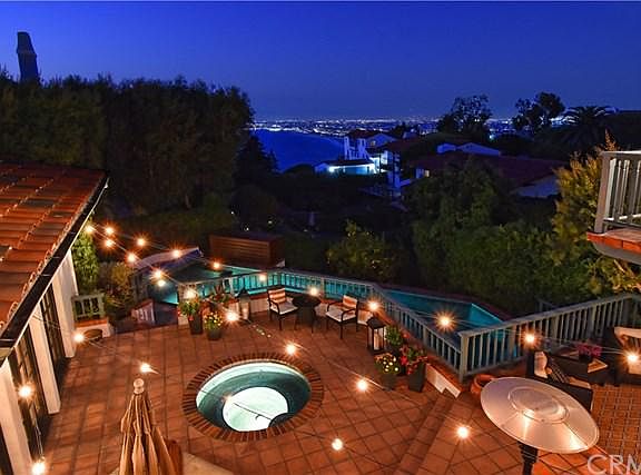 Breathtaking views of the Queen's Necklace, ocean white water, & downtown LA by day & twinkling city lights by night can be enjoyed from this Californian Mediterranean Style Home. The floor plan is laid out in an easy flowing "U" shape around the outdoor patio w/ 9 sets of French doors leading out to it. Featuring 4,070 SF of living space w/4 BD & 3 BA & 2 half baths plus an office, this home w/ French doors /windows throughout, boasts an abundance of natural light. Through the front doors you will be welcomed by a grand hallway that leads into the formal living rm. & family rm.w/limestone f/place perfect for cosy evenings. Large chef's kitchen completely remodeled late 2010 equipped w/ top of the line appliances, custom cabinetry, new lighting, flooring & a fireplace! From the kitchen via an archway is the formal dining rm. w/built in cabinetry. On the upper level is the master suite w/ large en suite & dressing room as well as 2 additional bdrms. On ground level are guest bdrm w/bath. The large patio w/ a water feature is the perfect setting for entertaining guests /outdoor dining. Other features are 3-car garage; large driveway; wine cellar; gym room; pool/spa & balconies overlooking views. All this and an 11,416 SF lot!