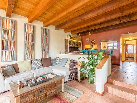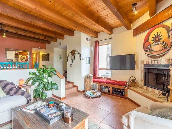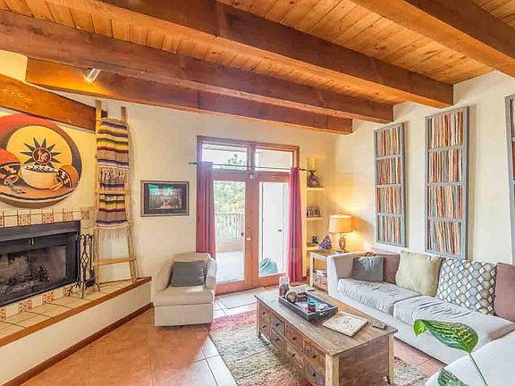 Wonderfully located ground floor condo in Viento del Norte. Built in 1986, this 1188 square foot end unit boasts 2 bedrooms, 2 full bathrooms, and a detached 1 car garage. Warmly hued porcelain tile, and quintessential SW accents bring warmth and style to the home. New water heater, refrigerator, oven, dishwasher and hall bathroom vanity/sink/decorative mirror. Exterior includes sizable deck and sweet patio. Fees are $245/month.