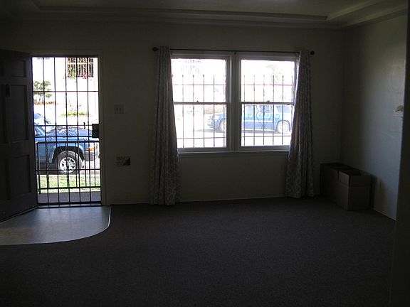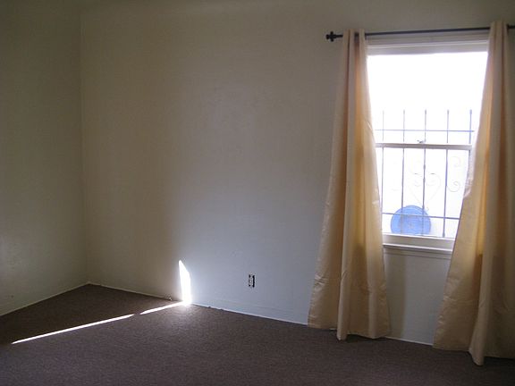 Clean and charming 2 bedroom, 1 bath Spanish style apartment in a 4 unit complex on a corner lot. Wall to wall carpeting, new mini blinds, fresh paint, washer and dryer in unit. Dining area inside kitchen. Coved living room ceilings and texture plaster walls enhance this charming 2 bedroom apartment. Street parking, handicap parking out front. No pets, non smoker. Close to elementary schools, high school, restaurants and shopping. Non smokers!Water and Trash included. No Garage.