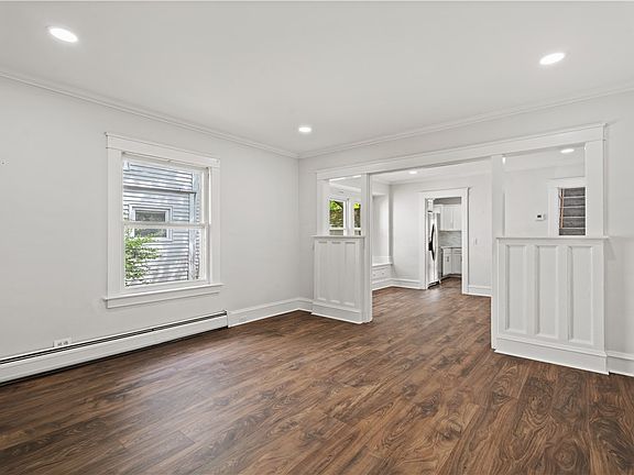 Step inside and immediately notice the fresh paint and durable, engineered hardwood floors that run throughout. The kitchen has been fully rebuilt from the studs—plaster removed, sheetrock installed—and features brand-new cabinetry, Corian countertops, stainless steel appliances (including stove, refrigerator, washer, and dryer), new lighting, fixtures, and a large window for natural light.