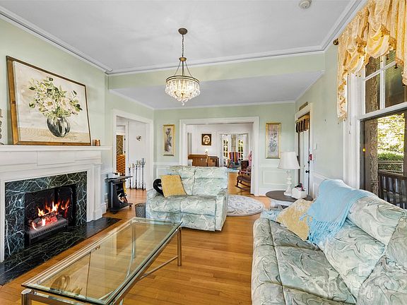 Proudly situated along West Main Street—an area celebrated for its elegant early 20th-century estates—this timeless home spans approximately 3,816 square feet of beautifully preserved character. Inside, you’ll find soaring ceilings, some original wood floors, intricate millwork, and original pocket doors, all seamlessly blending with thoughtful modern updates.