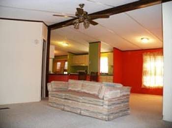 This 1988 double wide manufactured home with 1344sq. feet, sits on 1.5 city lots in a quiet neighborhood. It has 3 bedrooms and 2 bathrooms, a split floor plan with a great room and an open kitchen with a large breakfast bar. All of the appliances stay, which includes a 2 year old dishwasher, side by side refrigerator, and a Kenmore washer and dryer. The kitchen has new tile floor.