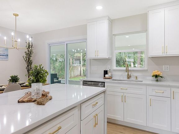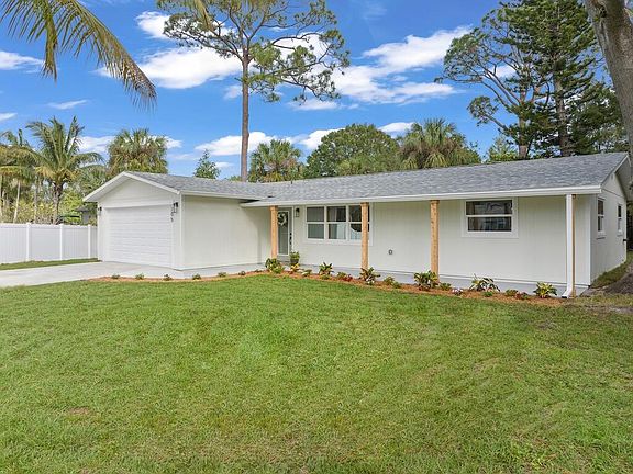 Welcome to this fully renovated 3/2/2 home in the heart of Sebastian. This home sits on a half-acre lot, 260 feet deep. Outside is a newly installed roof, impact windows and doors, and a 60-foot driveway. The kitchen has custom cabinets featuring soft-close doors, quartz countertops with waterfall edges, and a sleek under-mount sink. Gold accents add a touch of sophistication, complementing the brand-new stainless steel GE appliances. The master bedroom offers direct access to the oversized screened porch. In the master bath, you'll enjoy a spacious walk-in shower with a rainfall showerhead and a convenient hand wand. The guest bedrooms are impressively large, offering more space than typical new builds. The screened porch, 12 by 30 feet, is the perfect spot to relax. Schedule today!