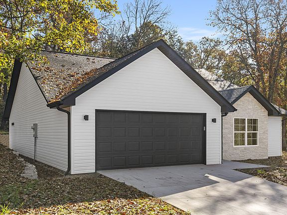 Don't you just love that new house smell! This one has everything you're looking for. No steps at all, a large 2 car attached garage, a huge lot that sits right outside of city limits which means way lower taxes and less regulations. This home is at the end of a dead end street so you have very little traffic and the woods behind the home are owned by the electric company so you don't have to worry about someone building close to you.The location couldn't be better either. This property sits 5 min. away from HWY 65 access, Walmart, Target, Cox Hospital, and all of the shopping and dining in the Branson Hills district or the Branson Landing. The house itself boasts an open floorplan that is perfect for entertaining. The kitchen has stainless steel appliances (including a stainless interior in the dishwasher which allows for a much hotter wash getting your dishes more clean than a plastic interior and it helps prevent mold) cabinets that go all the way to the ceiling with soft close doors and drawers, a large pantry and a huge island. The countertops (in the kitchen and bathrooms) are beautiful quartz and the flooring through the entire home is luxury vinyl plank which keeps things cleaner and is super durable. The ceilings in the living area and primary bedroom are 9 ft tall and there is a TON of lighting throughout. The primary bedroom is huge and features an ensuite bathroom with a massive walk in tile shower and an enormous closet. Each bedroom has extra power outlets and large closets. There is even power mounted high on the walls so you can mount a TV and not have unsightly power cables showing. The guest bathroom even has sound proofing insulation to make things more private. The covered back patio is huge and the gutters and downspouts are big. The exterior walls have foam insulation for peak efficiency and the windows are ''Low E'' argon gas filled, and fold in to make cleaning a breeze. What more could you want? Don't forget the virtual tour.