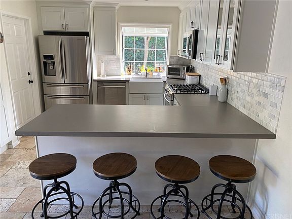 Welcome to this comfortable, spacious, move-in ready, 4 bedroom, 2 full bath single story home in a highly desirable and peaceful West Hills neighborhood. The property sits on a .25 acre lot with attractive curb appeal. The front yard is beautifully landscaped with mature trees and a paved driveway. The open floor plan is accentuated with gorgeous travertine flooring in the entry through the eat-in kitchen, crown molding, and recess lights throughout. Updated eat-in kitchen boasts travertine flooring, beautiful Ceasarstone counter-tops, marble back splash, white farm sink, and stainless steel appliances. Laundry room off of Kitchen with additional storage space and outdoor entry. Eat-in kitchen features a brick fireplace and beautiful French doors opening out towards a grand backyard with a pool and mature fruit trees, waiting for the right buyer to make it into a lush oasis perfect for entertaining. Don't miss the opportunity to move into a highly sought after West Hills neighborhood, featuring the award-winning schools Pomelo Community Charter, Hale Charter Academy and El Camino Charter High School. Close to parks, shopping, dining and entertainment.