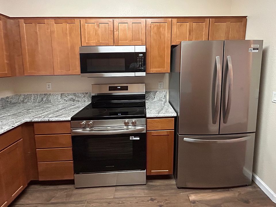 Master suiteCovered private patioWalk-in closetGranite counter topsCeiling fansNew stainless-steel appliances
