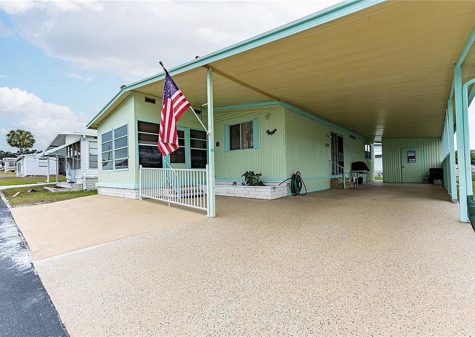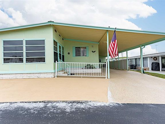 Welcome to Spanish Trails Village—an active 55+ GATED community where you own the land and enjoy a low HOA fee of just $129/month. This nicely maintained 2-bedroom, 2-bath home is move-in ready—just pack your bags and head to sunny Florida! Inside, you’ll appreciate the desirable open floor plan that connects the living, dining, and kitchen areas. The updated kitchen features newer appliances, refreshed cabinet doors, and upgraded flooring—perfect for any home chef. The dining area flows seamlessly into the living room, enhanced with laminate flooring and ceiling fans for comfort throughout. Sliding doors off the living room lead to the cheerful Florida room, an ideal spot for morning coffee, card games, crafting, or reading. Step outside to the covered front patio, where you can relax and enjoy those warm Florida breezes. The owner’s suite offers a spacious retreat with a large, updated step-in shower, a newer vanity, and a high-rise toilet. The second bedroom includes laminate flooring and a walk-in closet, while the guest bath has been upgraded with laminate flooring, a high toilet, and a stylish tub/shower combo with glass doors. Additional conveniences include a laundry area in the attached storage shed off the carport, providing both functionality and extra space. Spanish Trails Village residents enjoy fantastic amenities: a heated pool and spa, clubhouse, and active calendar of community events. All of this comes with low monthly fees, making it one of the best values in Zephyrhills. Centrally located near shopping, restaurants, and medical facilities, this home combines comfort, convenience, and community. Call today to schedule your private showing!