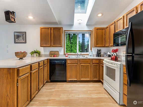 Discover the perfect blend of comfort & convenience in this impeccably maintained 3-bedroom rambler in Mukilteo. Nestled in a peaceful cul-de-sac, this home offers A/C for year-round comfort & boasts a brand-new roof installed in March 2024 & a two-tiered Trex deck completed in December 2023. The expansive 9,148 sq ft lot provides ample parking, including space for an RV. The primary bedroom offers privacy with views of the backyard & mature trees, plus an ensuite bathroom with a walk-in closet. The open-concept kitchen flows into the family room, featuring a cozy gas fireplace. Located near shops, the ferry, Boeing, & hwys. Enjoy the quiet neighborhood with no HOA fees. With 19 years of meticulous care, this property is move-in ready!