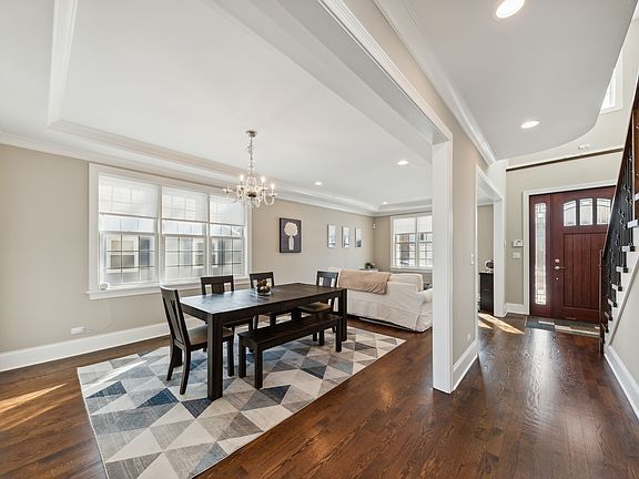 Welcome home! Look no further than this perfectly situated, 2018 new construction single family home located in this prime Morton Grove location. Enter into the front foyer to the grand staircase upstairs that leads to 4 bedrooms and 3 full bathrooms including a huge primary suite with a massive walk-in closet and spa inspired primary bathroom featuring a huge walk in shower, soaking tub, separate watering closet, and double vanity. All of the secondary bedrooms upstairs are highlighted with ensuite bathroom arrangement's with two of the secondary bedrooms sharing a "jack 'n jill" set-up. The second level is complete with a full walk in laundry room with side by side washer/dryer and laundry sink. The main level lays out perfectly with a front formal seating area that gets great natural light to the South, separate dining room ideal for hosting the holidays, massive chef inspired kitchen with high end appliances including a double oven. The kitchen is complete with quartz countertops, pendant lights, mosaic tile, white shaker cabinets that go all the way to the ceiling, and wood grain toned island. Immediately off the kitchen and eat-in dining set-up, the sliding door leads to the outdoor patio making this space an entertainers paradise for summer nights. The huge open, primary living space is topped off with a piped gas fireplace arrangement and beautiful stone accented tile surround. The main level is complete with a full size mudroom with coat hooks, full bathroom for guests that includes a walk-in shower, and a 5th bedroom that makes for a great office/guest bedroom. Things don't end there! Make your way to the fully finished carpeted basement with 2 additional bedrooms, a 5th full bathroom, massive open living space with a dry bar, den area perfect for a play area or golf simulator, and tons of additional storage! No detail was spared throughout from the hardwood floors on second and third level, coffered ceilings in the living room, built in speaker surround sound, dimmer light switches throughout, oversized two car garage, meticulously maintained landscaping, and front porch perfect for your morning coffee. The location is just minutes away from the Metro train line, Mariano's, all the great restaurants, bars and shopping that Morton Grove and Glenview have to offer. School district 219 feeds into Hynes Elementary, Golf Middle School, and highly ranked Niles North High school.
