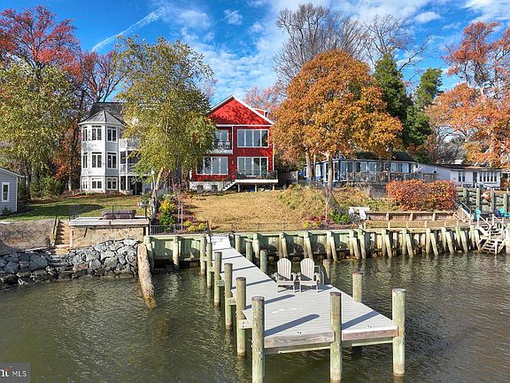 Gorgeous 3-bedroom home, built in 2020, offers unparalleled Chesapeake Bay views. From the moment you step through the 8 ft custom front door, you will appreciate the beautiful maple floors throughout and the huge water views through the wall of glass in the great room. The open floor plan allows for multiple seating and dining options. Step through 8 ft waterside doors to the large Timbertech deck and stroll down to the pier for a sundowner beverage. The great room has a gas fireplace and built-in shelves. The gourmet kitchen includes quartz counters, and a Sub-zero refrigerator, Bosch wall oven, Asko dishwasher & Wolfe induction cooktop. There’s a walk-in pantry for additional storage. Just off the foyer is a 10 ft high screened porch with knotty pine ceiling and slate floor for those summer crab feasts. The main level also features a bedroom currently used as a home office, and a full bath. The waterside of the 2nd floor is the incredible primary suite. WOW! It is approximately 600 SF and has 16-foot cathedral ceilings, a private deck, two walk-in closets, and the same gorgeous maple floors. The ensuite bathroom has a dual sink zebrawood vanity with quartz top, and a dual head shower with unobstructed Bay views. The bedroom suite has unique, shaved Scandinavian Birch hanging light fixtures and electric shades. The second level has another bedroom with vaulted ceiling, and a spacious hall bath with soaking tub and separate shower. A dedicated laundry room has front-loading machines. The versatile top level is used as an extra bedroom but could be a home office or exercise area. The full basement is the perfect rec room. Plan your parties around the pool table or a large-screen TV. One of the benefits of this location is that it feels so removed from city life, but it is an easy 12 minute drive to the heart of Annapolis. Or, access commute routes in 15 minutes. Some of the details not to miss: 240V electric vehicle charge port installed at top of driveway; home achieved SILVER status with the National Green Building Standard; public water and sewer and whole house sprinkler system; crabbing pier has composite decking and is less than 3 years old; home is NOT in a floodplain (basement slab is at elevation 12.5); and, of course, the unbelievable views.