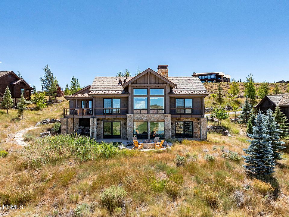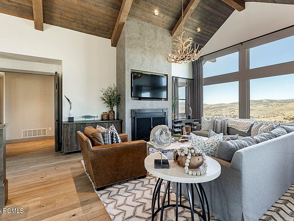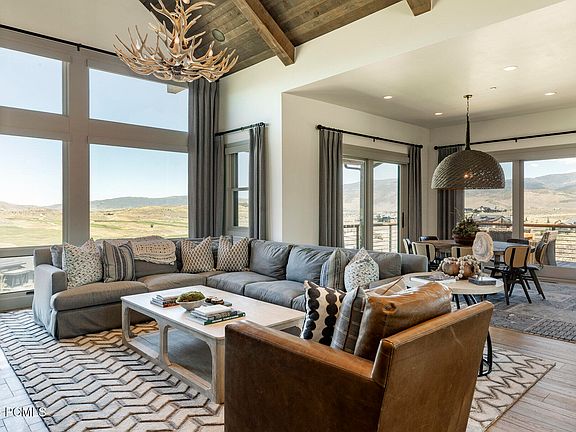 This stunning 4-bedroom, 3.5-bath Cottonwood floor plan at Victory Ranch spans 3,226 sq ft and captures breathtaking views of Deer Valley, the Uinta Mountains, and the Rees Jones-designed golf course. Thoughtfully designed by Barclay Butera, the interior showcases Duchateau flooring, rich barnwood accents, a wood-burning fireplace, beautiful furniture, designer wallpaper and custom lighting and draperies in each room. The main level features an open floor plan with great room, vaulted ceilings, gourmet kitchen with Wolf and Sub-Zero appliances, coffee bar, wine fridge, dining room, laundry room, mud room, powder room and a King en-suite with private balcony. On the lower level you will find 3 bedrooms, including a spacious bunk room, 2 bathrooms, and a separate living room. Venture outside and dine on the newly stained deck or gather around the fire pit while soaking in the scenic views and peaceful evenings at the ranch. A perfect blend of rustic warmth and modern elegance, schedule your showing today and make this beautiful furnished cabin home yours!