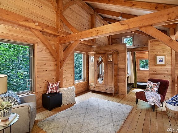 This peaceful hideaway will help you thrive as an escape from city life or your year-round oasis. The hand crafted home, built by Salisbury, is completely wood based-no screws or nails were used-only traditional carpentry methods. Take in bright soaring spaces, massive beams and skylights. Follow the spiral staircase to the loft or head down to the lower level with brushed concrete floors and french doors. Sits on just under an acre surrounded by tranquil forest, wildlife, creek, and fire pit.