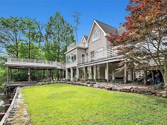 Magnificent property with incredible views & more than 500' riverfront on the deep Bogue Falaya River in Covington. Mature landscaping throughout. A clear spring fed 1.8 acre Lake Louise features a paddle wheel and a rock patio. Trickling brooks add to the tranquility of this special place. The home is a great retreat with lots of natural light and open floor plan. Plenty of deck space for entertaining and taking in the beautiful views of the river. Also features a deep water dock with boat lift.