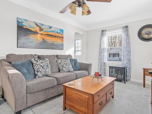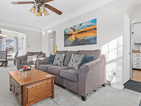 Welcome to this beautifully updated home, featuring an oversized 1.5 car garage, perfect for your storage and workshop needs. Step inside to find wonderful updates, including new carpet throughout the entire house. The main level is adorned with charming archways and coved ceilings, adding a touch of elegance to your living space.