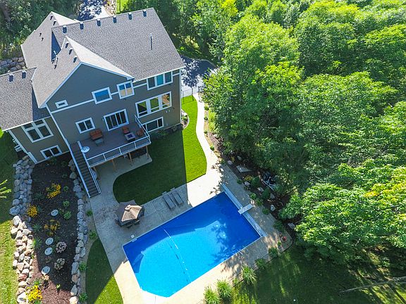 Call Top Professional in Cottage Grove Justyna Johnson Today 651 501-2345 Stunningly designed Custom Home in the one of the most private glorious 1.6 acres. Walk out to fabulous deck to gorgeous pool and gardens. Over 100K in exterior living invested. Impressive soaring 2 story foyer and splendid 12' high living and dining rooms. Gourmet kitchen & appliances. Grandeur and comfort meet together in this Brilliant designed home. Details abound. Luxurious owners retreat with library and full luxury spa bath. Super-sized upper level loft. Lower level is part finished with 5th bedroom. And massive 1700sq ft more space to finish plus Wirsbo Heated Floors, 6+ car garage Spectacular man cave.