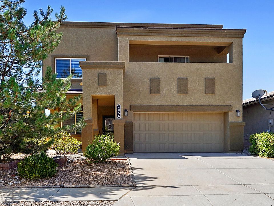 Fall in love with this light-filled 4-bedroom home just steps from scenic trails, the Petroglyphs, and Paseo Del Norte. The open-concept layout is perfect for everyday living and entertaining, featuring a stylish kitchen with granite counters, stainless steel appliances, and a walk-in pantry.Upstairs, a versatile loft adds extra flex space, while the dreamy primary suite offers French doors, a private balcony, and a spa-like bath.Enjoy your peaceful backyard with no neighbors directly behind--it backs to Volcano Vista High, so it feels wonderfully private with added peace on weekends and summers.Move-in ready, perfectly located, and full of charm -- this home has it all!