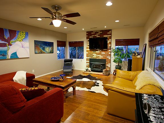 This Beautiful 3/2 home on a large canyon lot located on coveted Beagle St, blends indoor charm with outdoor entertaining space to create the ultimate SoCal lifestyle. This Home boasts: a large living room with a rustic brick fireplace, an open kitchen with maple cabinets and leaded glass doors, tile and wood floors throughout, 2 large sun rooms, AC, Solar Panels, an expansive backyard with mature fruit trees, wood patio for al fresco dining, and a large storage shed. Centrally located & close to all!!!