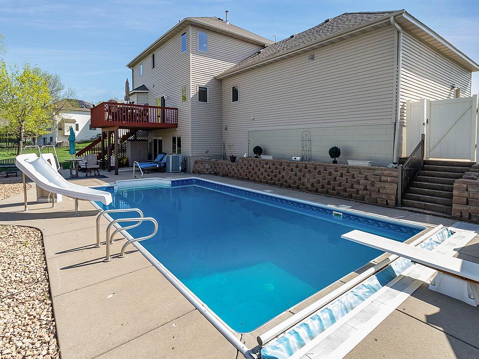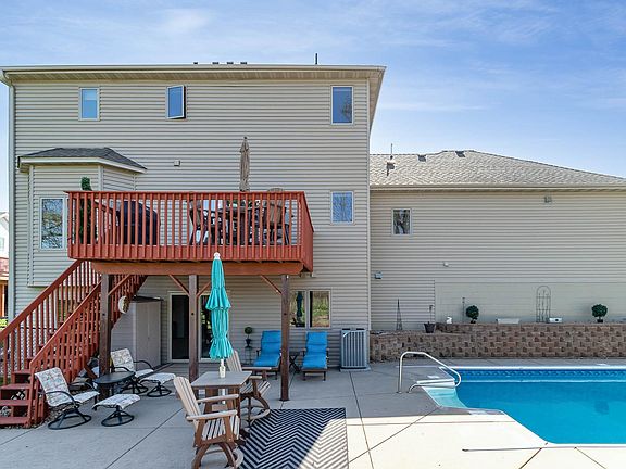 Ever dreamed of chilling by a pool all summer? This is your chance to your own crystal clear blue 9 ft deep pool complete w/diving board & power cover. Surrounded by a enchanting patio, pretty landscaping, fire pit area & perfect amount of green space for the yard games. Stately 2 story home in ideal location backing up to 500+ acres of parkland & trails along the mighty Mississippi-includes association maintained dock/picnic area just a short walk away. Did we mention breathtaking sunset views? Great spaces for everyone to spread out, or plenty of space to entertain in newer wet bar/rec room area in LL walking out to sun drenched pool area. 9 & 11 ft ceilings throughout main level. Updated kitchen & informal dining area walking out to spacious deck overlooking the beauty & nature that abounds. 3 Br's up w/huge luxurious master suite. 4 bathrooms, 3 full. Fenced yard. Updated sprinkler system & controller located in expansive 3 car heated/insulated garage. Put this home on short list.