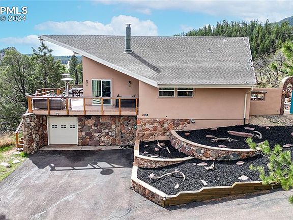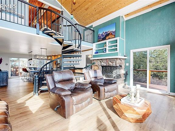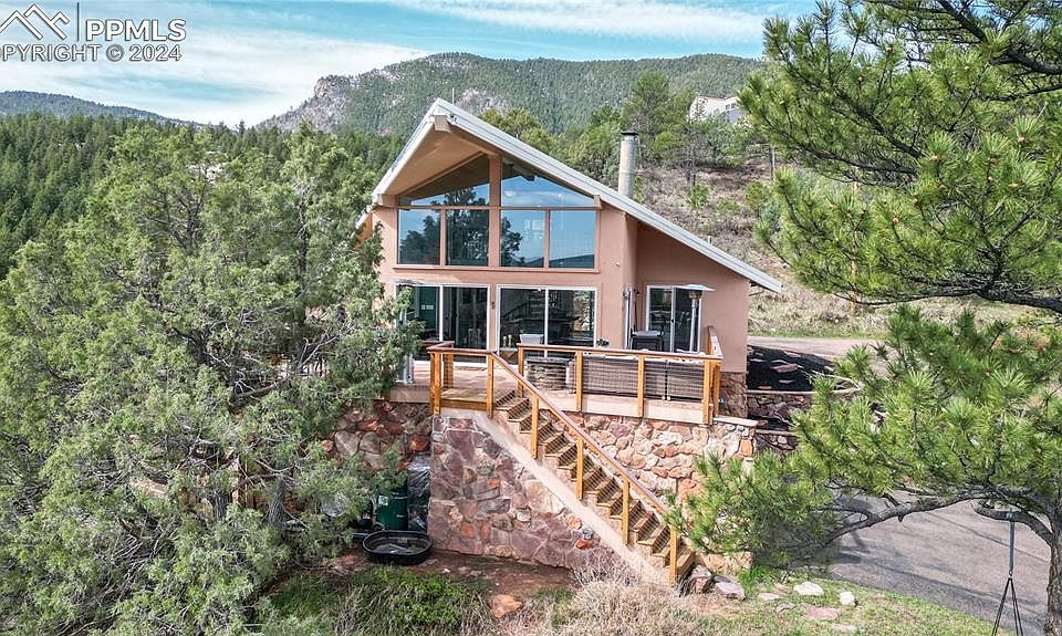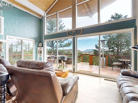 Welcome to this charming 3-bedroom, 3-bathroom home offering approximately 1,941 square feet of finished space, nestled on a 1.3-acre treed lot. The main level showcases Perry Park's beauty through floor-to-ceiling windows in the great room, providing stunning views of mountains and red rock formations. Enjoy cozy features like tile flooring, wood accents, and a wood-burning fireplace with a stone surround, while also having access to a large deck for outdoor relaxation. The updated kitchen seamlessly connects to the dining area and also offers a retreat to the front outdoor sandstone patio with waterfall. The main floor primary bedroom boasts luxury vinyl flooring, a walk-in closet, en-suite bathroom, and back deck access. An additional bedroom completes the main level. Upstairs, discover another bedroom with a vaulted ceiling and en-suite bathroom. Outside, unwind on either the rear deck with mountain and red-rock formation views, or the front sandstone patio surrounded by mature trees and a serene waterfall. Located in one of the most desirable Douglas County Golf communities. Perry Park Golf Course is highly rated & recent winner of the coveted CAGGY awards from Colorado Avid Golfer. Not a golfer? Social memberships are also available. Perry Park boasts acres of open space, hiking trails, horse stables & stunning red rock formations & it is only 5 minutes from Douglas County's new Sandstone Ranch Open Space & Sandstone Ranch Trails. Secluded but not isolated, this remarkable home is only 20 mins to Castle Rock & 40 mins to DTC or Colorado Springs.