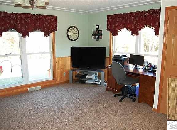 This is the perfect setting - beautiful in any season! Sitting in a private lot on top of a slight hill with the park like yard sprawling out around is this lovely 3+ bedroom ranch style home with full basement and attached 2 car garage plus a newer 3 car 30 x 40 garage. Main floor has a new Maple(no slam drawers) kitchen with breakfast bar, good sized living room, three bedrooms and a bath. A two tier deck perfect for enjoying your beautiful land. Downstairs is a newly finished huge family room, office, a full bath and laundry area. It has a 21 x 20 storage shed and a shop, also a 24 x40 barn style building with 2 levels plus a 10 x 10 screen house! Updates include kitchen, baths, flooring, garage, deck, vinyl windows, doors on the house and the garage, siding, gutters, furnace and a black top driveway! It's nice and close to the golf course and Pattison State Park!