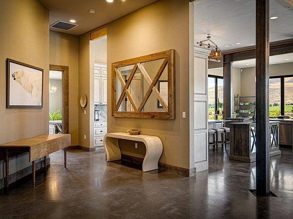 MLS# 270551 Embrace the rustic charm of country living on this expansive view property that encapsulates the heart and soul of farm life. A span of 46+ acres offers both a haven for a myriad of farming and equestrian pursuits, and luxurious countryside dwelling. Surrounded by unparalleled 360-degree views of Badger Canyon is the 7,500 sq ft estate home, exuding rustic elegance and offering a seamless blend of character and comfort. The main level spans 5,000 sq ft, with an unfinished upper level adding another 2,500 sq ft. Two separate 2-car garages provide 1,250 sq ft of automotive heaven. Unlock a world of indoor-outdoor living with over 60 linear feet of floor-to-ceiling glass Panoramic Doors and an expansive wrap-around concrete patio. Crafted from Montana Timber Products Ranchwood circle sawn cedar siding, the home effortlessly blends into the surrounding landscape. Step inside, and discover the blend of natural elements and modern amenities that make this home so extraordinary. A custom Schonbek crystal chandelier suspended from the 12-foot ceilings adds elegance and serenity, while the exposed timber and iron beams and hand-stained finished concrete flooring evoke a sense of timelessness and strength to the expansive open-concept design. The kitchen is a chef's dream, with custom soft-closed cabinetry and book-matched backsplash all topped with Brazilian Zumaia quartzite. A commanding 7-foot dual exhaust hood takes center stage, harmonizing with stonework and cabinetry. Designed for culinary enthusiasts and entertaining, the kitchen offers two of everything with dual islands, gas and electric ranges, dishwashers, and refrigerators, and can easily accommodate an entire family of chefs. Explore the 36'x72' workshop, featuring five bays including one pull-through, offering abundant space for diverse uses. Fully insulated and heated, with a RV water and electric hookup on site, and supported by two 200 amp service boxes. The land itself features 24 acres under pivot, with 10 acres in wheel lines, and an additional 5 acres in solid sets, all in alfalfa. At the heart of the farm, approximately three acres are a dedicated equine facility, featuring 5-foot pressure treat and no-climb fencing, a 220'x210' watered riding arena, and a feed and tack shed. For the horses, there are two large turnout areas and four 50'x50' paddocks, each with water, electricity, and matted shelters. Make an appointment today to see the endless possibilities firsthand.