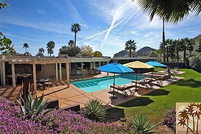 Miracle Home. Contemporary beauty with Mid Century flare. Estate size lot with amazing privacy. This property has all the bells and whistles and the history to go with it. Original owner was Dorothy Hart, author and wife of 50"s comedian/actor, Teddy Hart and sister-in-law of iconic composer/lyricist, Lorenz Hart of Richard Rodgers of Rodgers and Hammerstein. In addition, property is located in Thunderbird, one of the most historical neighborhoods of the desert. Every detail of this home is meticulously maintained and shows pride of ownership. This place lacks nothing with 2 spas, sparkling pool, outdoor living room with bar, BBQ and plasma. 2 car, plus separate golf cart garage are added feature. Home has also yielded $8500/month income during "on season" months. This is a rare find and all are welcome to come view.