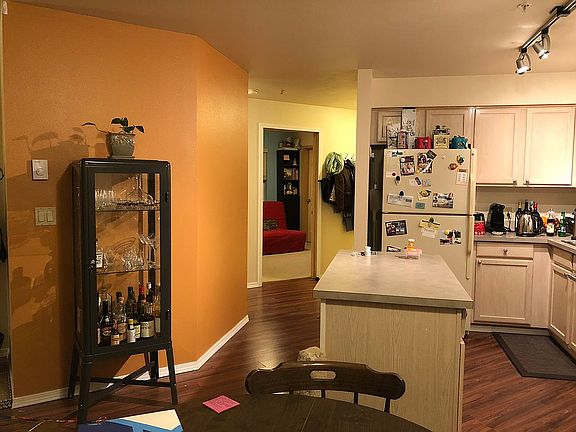 Step into the generous entry complete w/ large coat closet. City skyline view from living and dining areas. Remodeled kitchen w/ new cabinets, quartz countertops, stainless steel appliances, island and pot rack. View deck off main living area. New flooring throughout. Master with double closets and .75 bath. 2nd bedroom w/ walk-in closet and office nook. New vanities in both baths. W&D in unit. Small dogs/cats permitted. 1 uncovered prkg, storage, & guest prkg. Walk score 92!