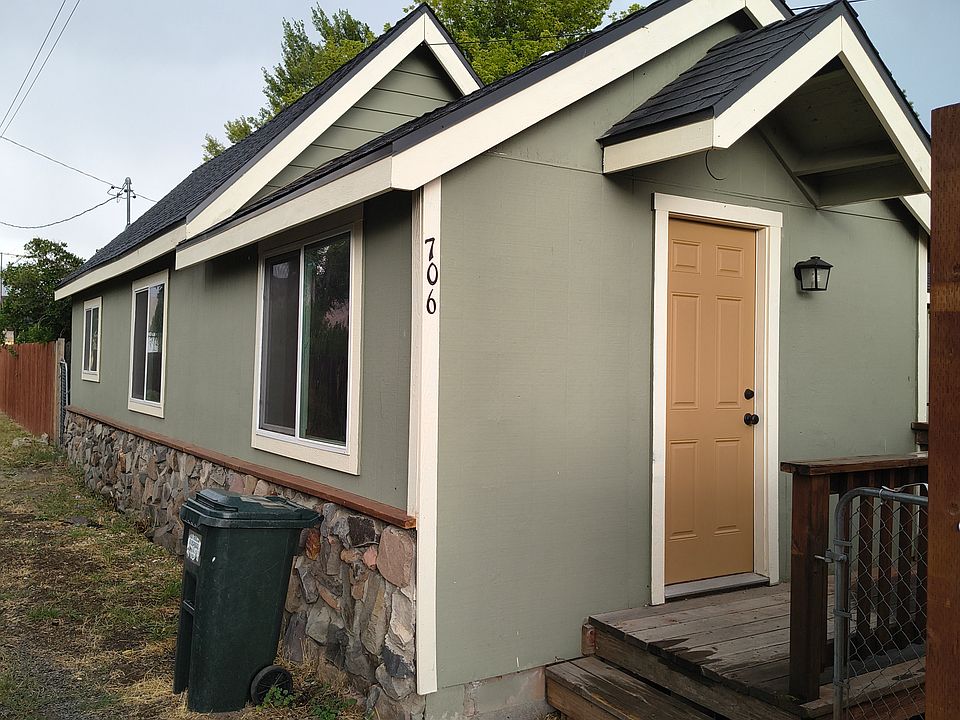 Washer and dryer hookups. This unit just had a brand new water heater installed. It includes a fire burning wood stove and a wood shed that can be used for wood storage in the winter. there is also a wall furnace. The yard is fenced and ready for someone to enjoy. The property is close to a school, grocery store, skate park, and fire station. Parking is allowed in alley next to house.