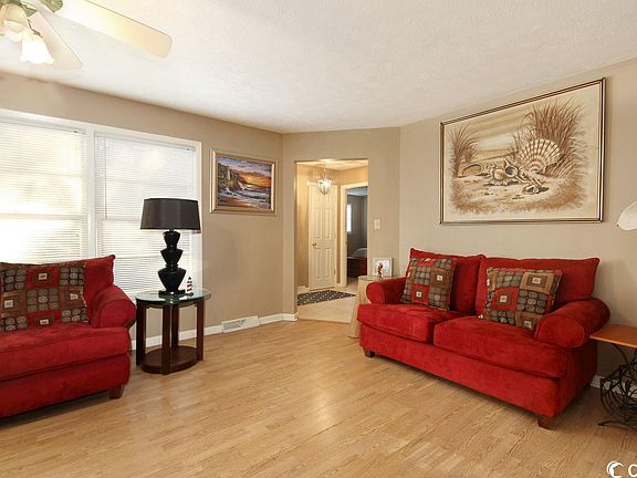 Nestled in a quiet neighborhood minutes from both downtown Myrtle Beach and the sand and salt water of the Atlantic, this brick ranch is ready to welcome you home! Upon entering through the front door, you will be impressed by the spacious open floor plan! Large windows allow natural light to stream through the rooms! Charming details like gorgeous floors and cased doorway gives character to the space. In the kitchen you will discover tiled floors, matching appliances and an island while a built-in desk provides space for working from home or for kids to complete school work. The cozy primary bedroom boasts an attached bath! Two additional bedrooms are generous in size and share a hall bath. Step through a pair of french doors and step out onto a large covered porch overlooking a large backyard! Perfect for pets, children or entertaining guests, you will want to spend all of your free time out here! With NO HOA and within a short walk to the beach and shopping, you do not want to miss out on this home! Don't hesitate, schedule your showing today!