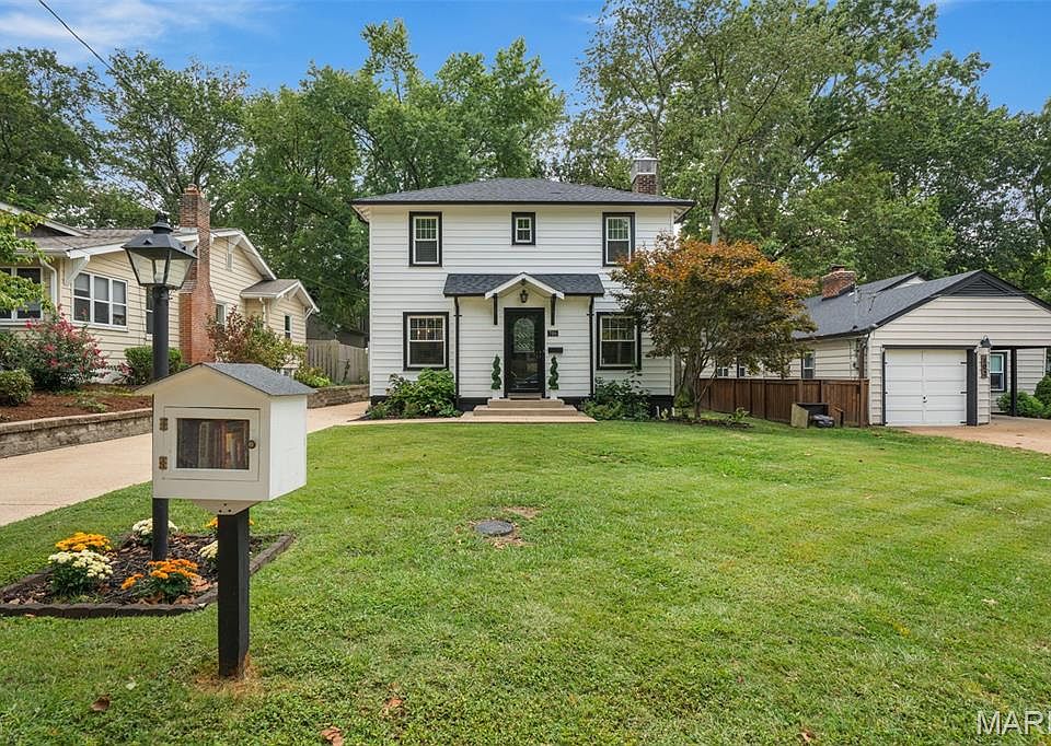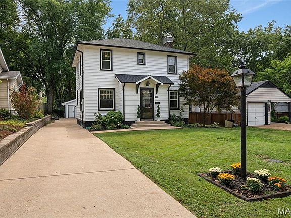 Est. 1925. Welcome to this stunning, completely renovated 2 story home in the highly sought-after Tuxedo Park neighborhood of Webster Groves. Brimming with timeless character yet thoughtfully updated for today’s lifestyle, this move-in ready home blends historic charm with modern comfort in every detail. From the moment you step inside, you’re greeted with gorgeous hardwood floors, tall ceilings, and natural light streaming through updated vinyl windows. Classic arched doorways and a welcoming center hall plan provide the perfect balance of elegance and functionality, setting the tone for the entire home. The spacious living room features a stately brick fireplace—a focal point that brings warmth and charm to the main level. Just beyond, the beautifully renovated kitchen is a dream for both everyday living and entertaining. Outfitted with crisp white cabinetry, sleek countertops, a deep farmhouse apron sink, modern pendant lighting, and a breakfast bar with seating for two, this kitchen seamlessly combines style and function. The kitchen flows effortlessly into the dining room, where a built-in corner cabinet adds both character and practical storage. Upstairs, the primary bedroom offers a peaceful retreat with a double custom closet providing exceptional storage. The updated primary bath is designed with a modern yet timeless feel, featuring hexagon tile flooring, a spacious tiled walk-in shower with built-in niches, and stylish fixtures. Two additional bedrooms with deep closets and another full, updated bath complete the second floor, giving everyone space to spread out in comfort. The unfinished basement offers endless possibilities with its tall ceilings, new sump pump, and professional waterproofing. Whether you envision a finished recreation room, gym, home office, or workshop, the lower level is ready for your personal touch—or simply enjoy it as-is for hobbies, storage, or projects. Outdoor living is just as inviting as the inside. Enjoy crisp fall evenings on the covered brick patio overlooking the level, fenced backyard—the perfect space for gatherings, gardening, or play. A newer detached 2 car garage provides convenience, storage, and off-street parking. The location is as special as the home itself. Set across the street from Margaret Park and just around the corner from Maypop Coffee & Garden Shop, you’ll find yourself in the heart of what makes Webster Groves so desirable. Walk tree-lined streets, connect with neighbors, and enjoy easy access to the community’s charming shops, restaurants, and parks. With its rare combination of 1920s charm, thoughtful renovations, and unbeatable Webster Groves location, this Tuxedo Park treasure is truly move-in ready and waiting for its next chapter. Don’t miss the opportunity to call this home yours.