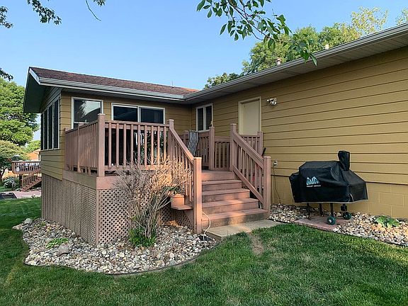 Nice four-bedroom home in good neighborhood close to Yankton middle school, elementary school and Hillcrest Country Club. Main floor has master suite with bathroom, second bedroom and another full bathroom. Formal living room at the front entry of the house. Kitchen with breakfast bar and attached dining and living room. Large sunroom with plenty of natural sunlight and leads to a no maintenance deck. Basement has additional 2 bedrooms with full bathroom and another living room with walkout to outside patio. Bonus room in the basement which makes for a nice gameroom, craft room or exercise area. Plenty of storage with built in shelves in the basement. Other extras include reverse osmosis water system and water softener. Brand-new hot water heater. 2 car garage with extra deep stalls and there is a closet built in the garage. Appliances include refrigerator, electric stove, microwave, dishwasher and also the washer and dryer in the main floor laundry room. Also has radon mitigation system and Rain Bird underground sprinkler system.