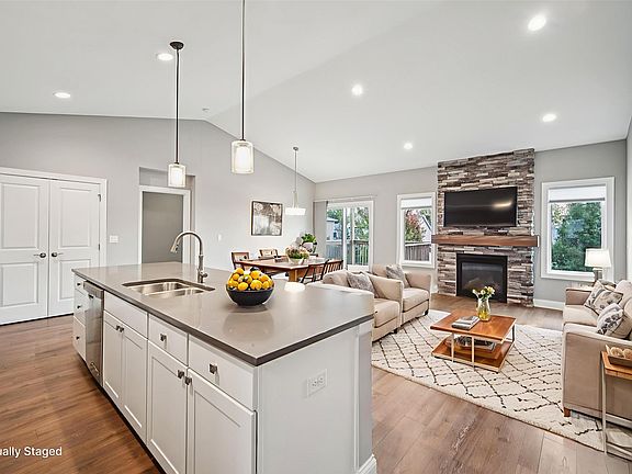 Enjoy the privacy of a single-family home without the upkeep! Discover the best of both worlds in this like-new, stand-alone ranch villa, nestled at the end of a private street on nearly a ¼-acre lot. With no shared walls and low-maintenance living—including lawn care and snow removal—you'll enjoy the privacy of a detached home with the convenience of villa living. Step inside the main floor to find a bright, open layout featuring vaulted ceilings and a stunning stone fireplace. You will also notice a well-appointed kitchen with white soft-close cabinetry, quartz countertops, tile backsplash, a huge island, and spacious pantry. The primary suite with private bath and walk-in closet, plus two additional bedrooms, a full bath and a functional laundry/mudroom round out the first floor. Enjoy the covered deck, perfect for morning coffee or evening relaxing. The walk-out lower level offers even more space with a large family/rec room, a spacious 4th bedroom and 3/4 bath plus an expansive unfinished area—ideal for storage, a home gym, workshop, or hobby space. This property offers the rare combination of privacy, space, and low-maintenance living. Don’t miss out—schedule your tour today!