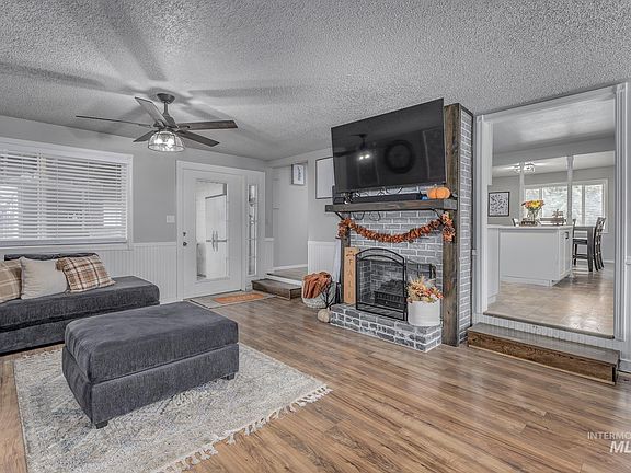 Welcome to 3000+ sq ft of updated comfort and living space. Huge master suite with French doors leading out to the covered patio. Large master bed and bath on the main floor with jetted tub, walk-in shower and an extra large walk-in master closet. The main floor also features a split bedroom floor plan with an additional bedroom and full bath, a large living room and a gorgeous updated big kitchen with island. Upstairs includes an additional living room, three bedrooms, a full bath, plus an office and storage room. New carpet, flooring and paint throughout. You'll find abundant storage space inside and out along with the 450 sq ft storage shed. Large covered patio, well for irrigation, new roof installed Oct 2024, two gas heating units (one upstairs installed last year, one in basement), newer water heater and a fully fenced backyard with privacy and ample space on the property for RV parking. This property is zoned residential or can be used as a commercial business. Many options with this home & property!